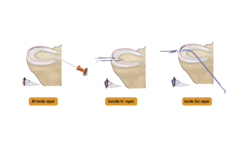 The meniscus has very poor blood supply- only in its rim. Tears in this healing zone are repaired with a variety of techniques. Tears in the non-healing zone and degenerated tears in elderly are treated