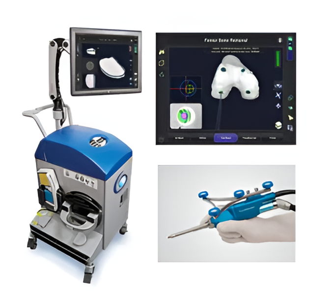 The Navio-Roboticplat form adds more precision and accuracy to the procedure. During the procedure, the tracking data is used to generate a3D representation of patient’s knee. This anatomical information helps in planning the correct size and position of the implants unique to your knee. Therobotic armhelpsin proper shaping of the bonetoreceivethe implant